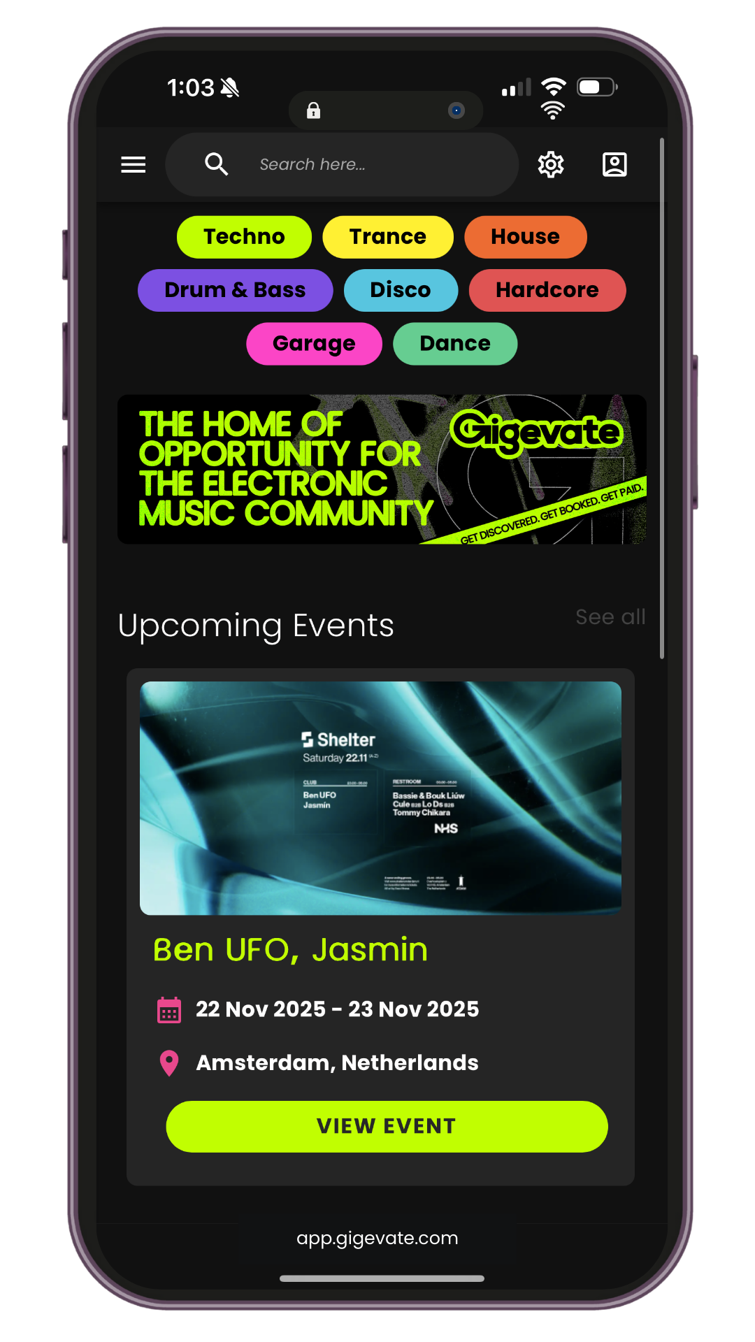 Gigevate transforms the way the scene experience electronic music, everything you need to stay connected is here.